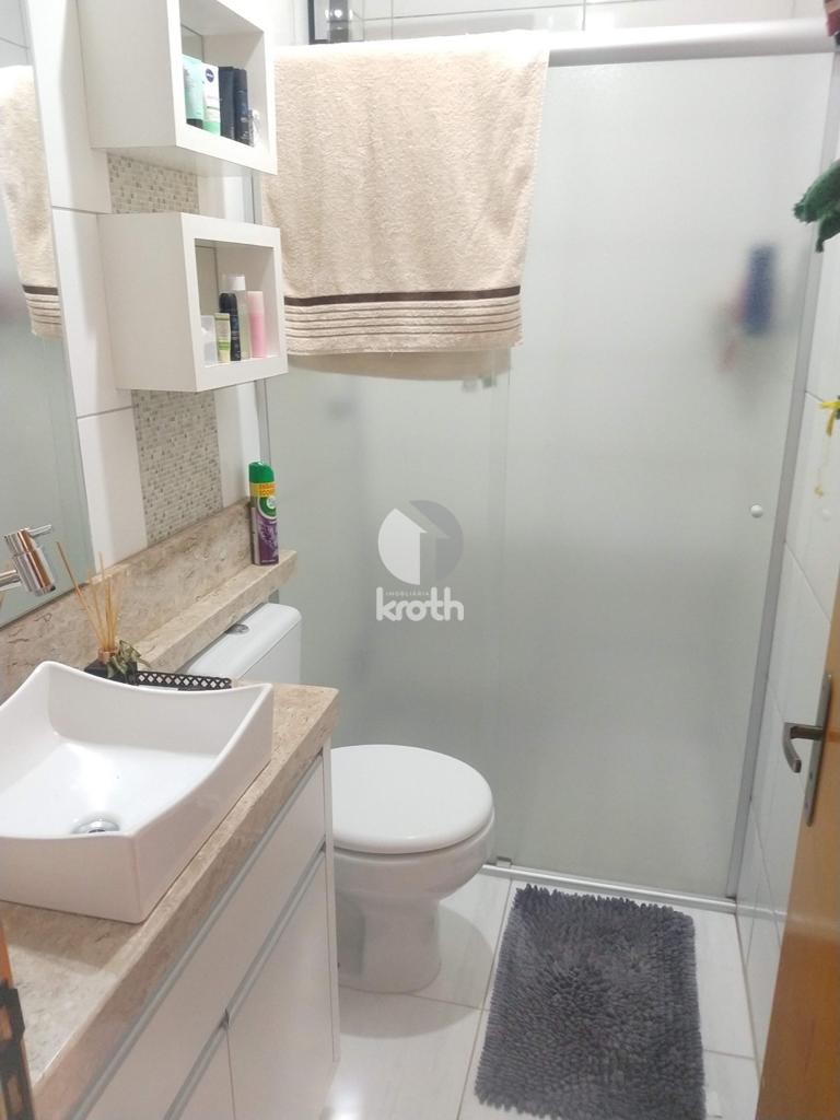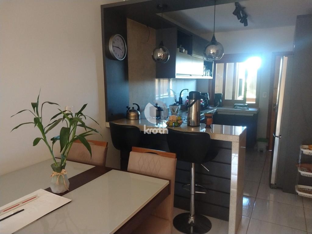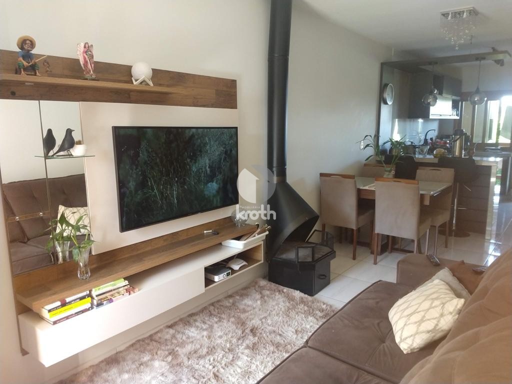 Descrição › Casa geminada localizada no centro de Santa Clara do Sul. Ficam todos os móveis sob medida.